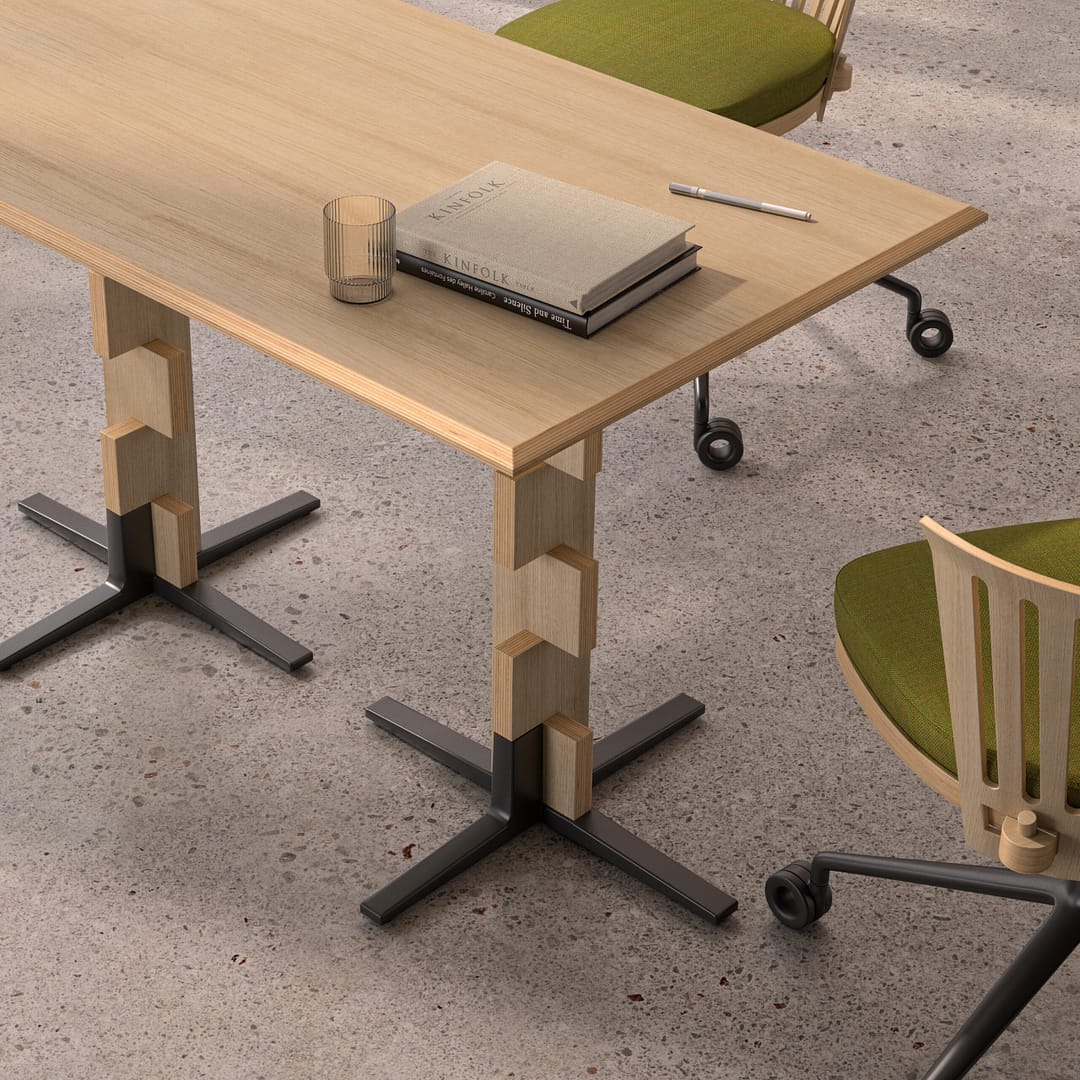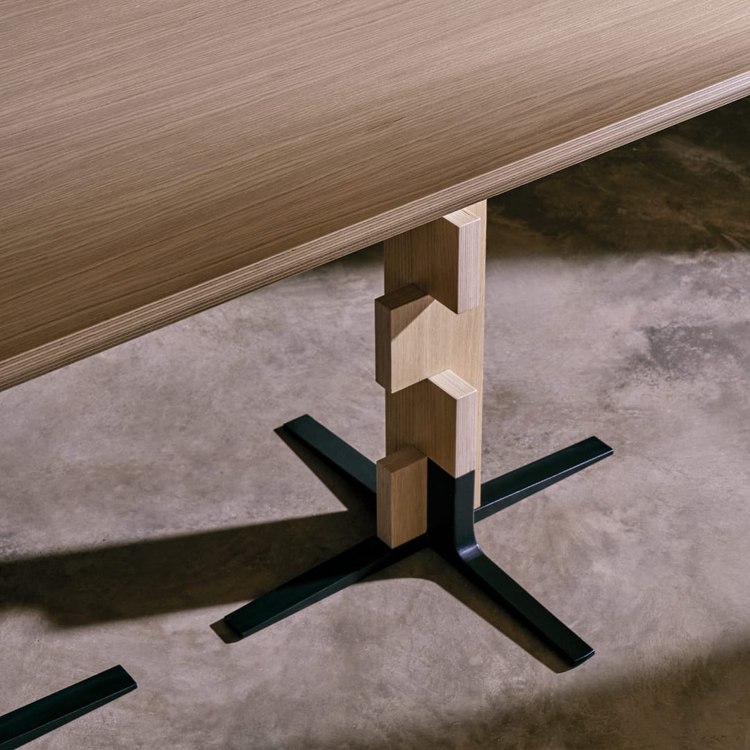 This table is an innovative and authentic design, inspired by the logic of the game of chess. Available in single or double base versions, with its three-dimensional central column, it achieves perfect visual balance and remarkable structural strength. Designed for the circular economy, the Polina Table has a minimal carbon footprint, using FSC® certified materials, and all its components are easily separable and recyclable.