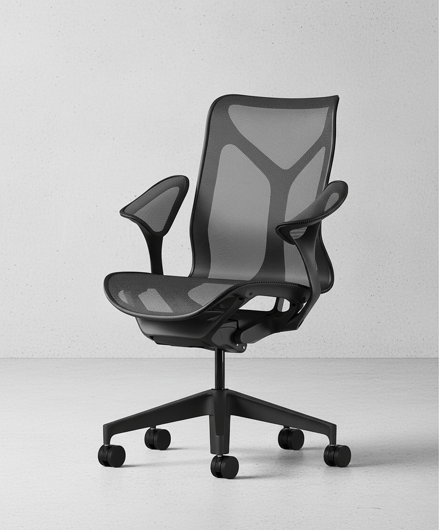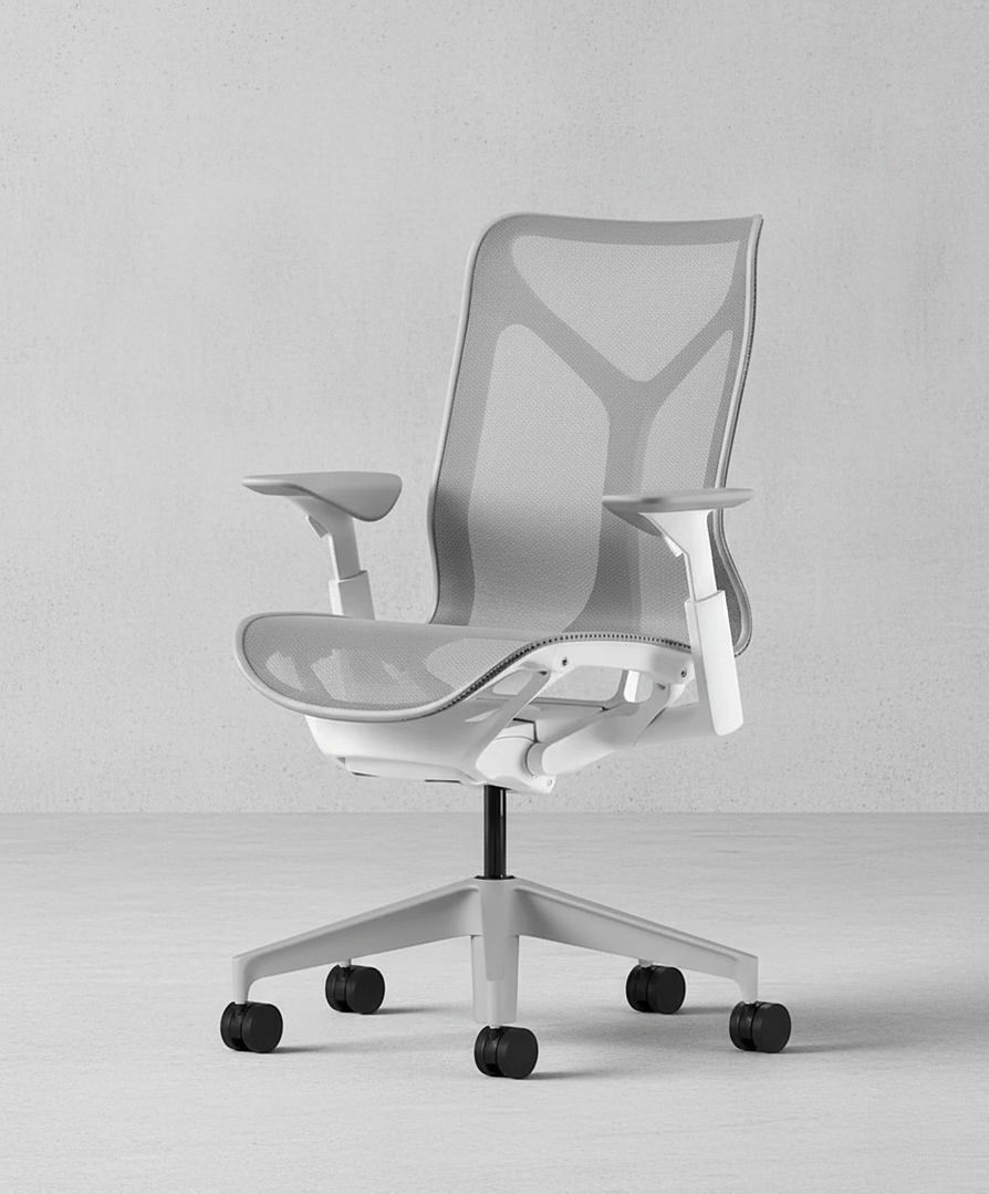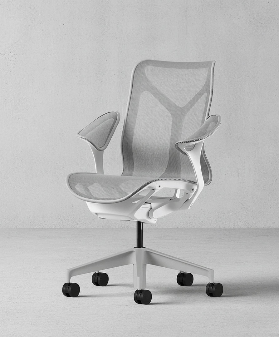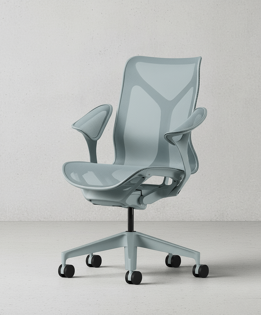 Cosm is available in three back heights – low, mid, and high – making it suitable for different work styles and levels of support. The chair also offers a variety of arm options, including the distinctive “Leaf Arms,” designed to stay unobtrusive when working close to a desk. Beyond its technical qualities, the Cosm stands out for its aesthetic: offered in unified color tones, where the frame and suspension blend seamlessly, it projects a minimalist yet refined presence. The result is a chair often described as one in which you can forget you are even sitting, thanks to its effortless balance of design, comfort, and ergonomics.