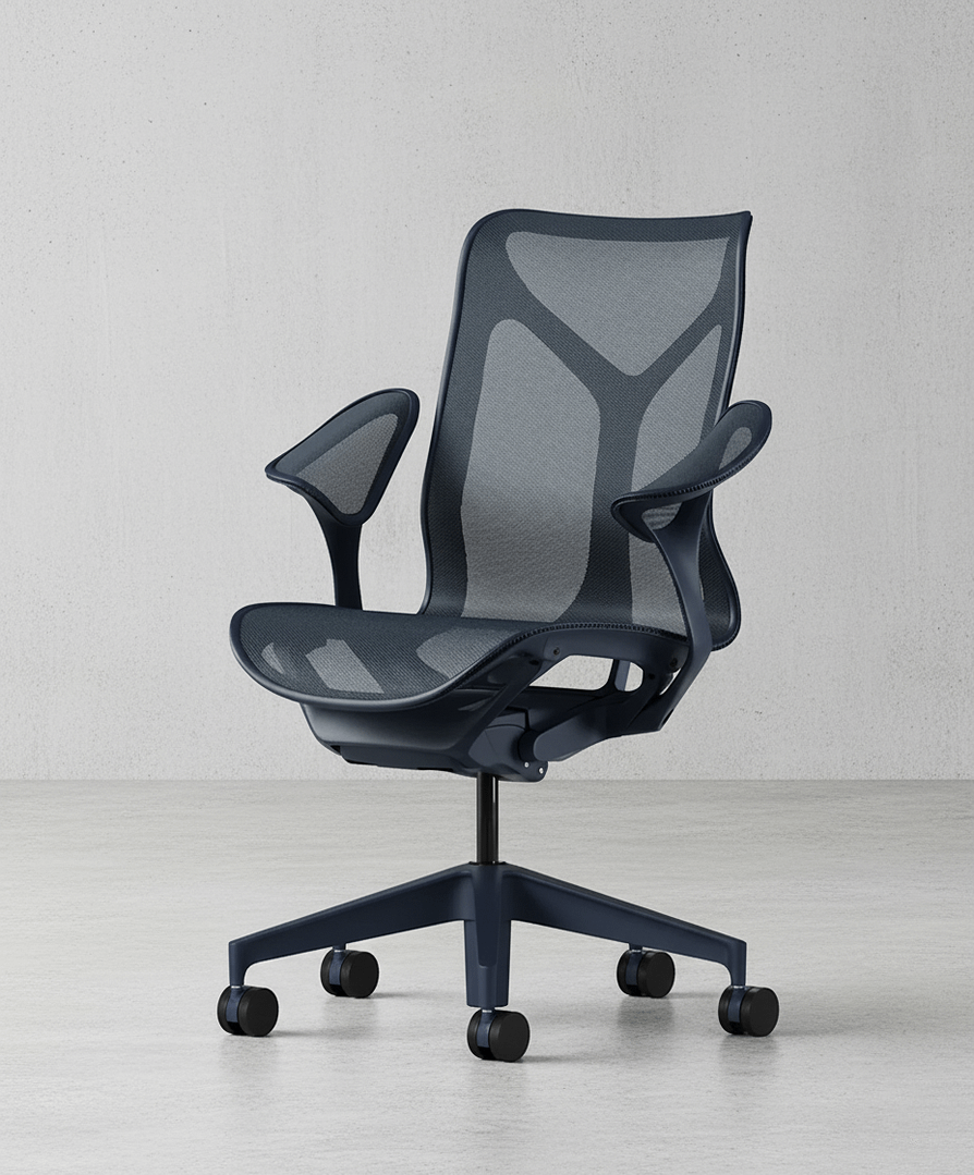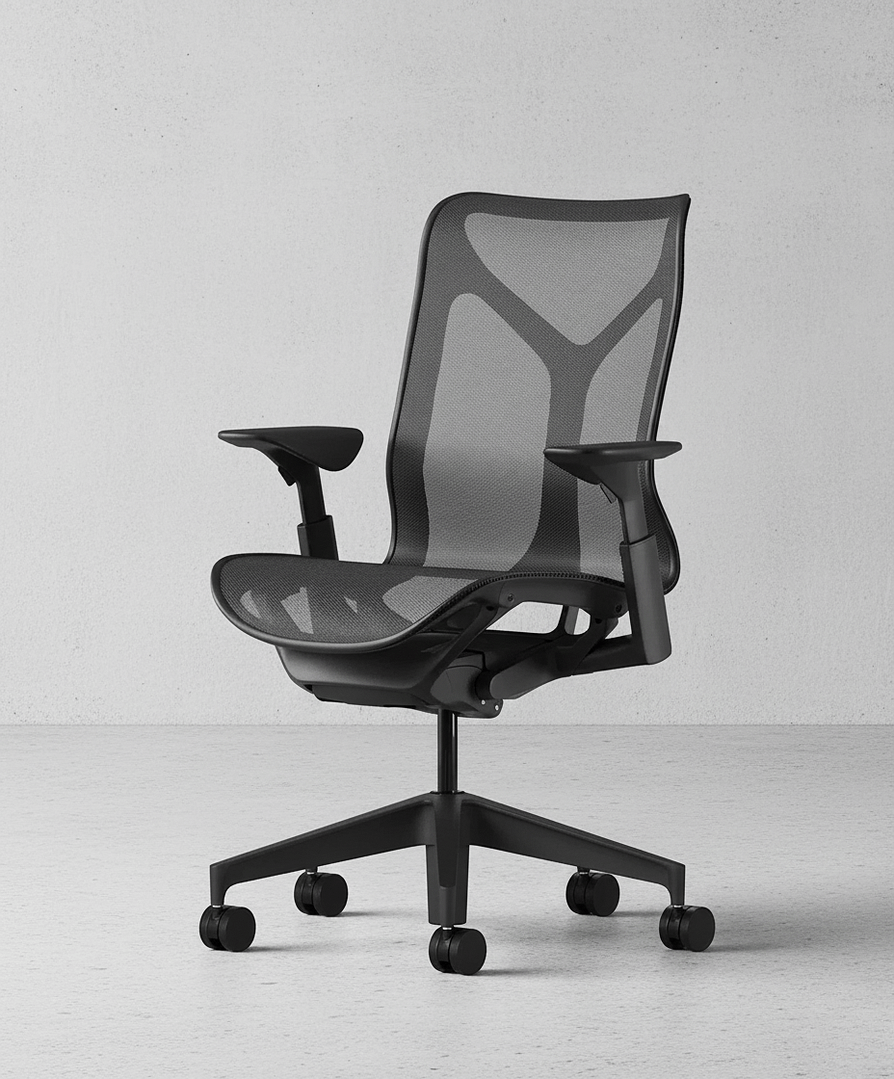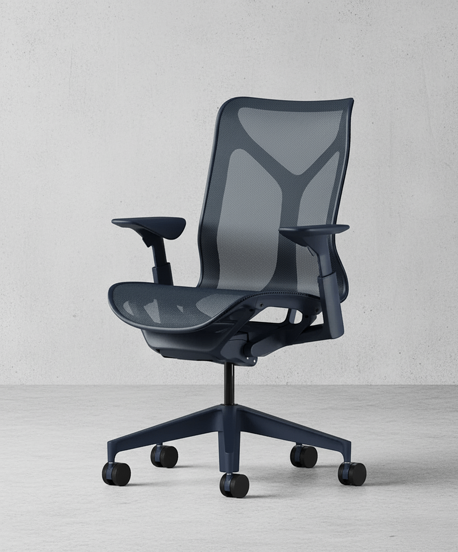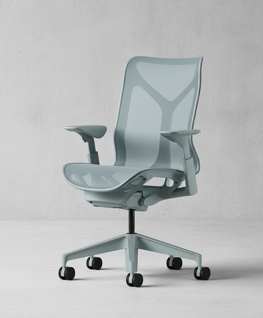 The Herman Miller Cosm with mid backseat is a chair designed to deliver immediate comfort without the need for adjustments. Its purpose is to make sitting as effortless as possible – you simply sit down, and the chair automatically adapts to your body. Unlike many other office chairs, the Cosm requires no complex fine-tuning, as it intuitively responds to movement and changes in posture. The seat and back are made from a continuous elastomeric mesh that distributes weight evenly, allows air to flow, and provides consistent support throughout the day. Its slim, flexible frame moves with you, eliminating hard edges and encouraging natural freedom of motion.