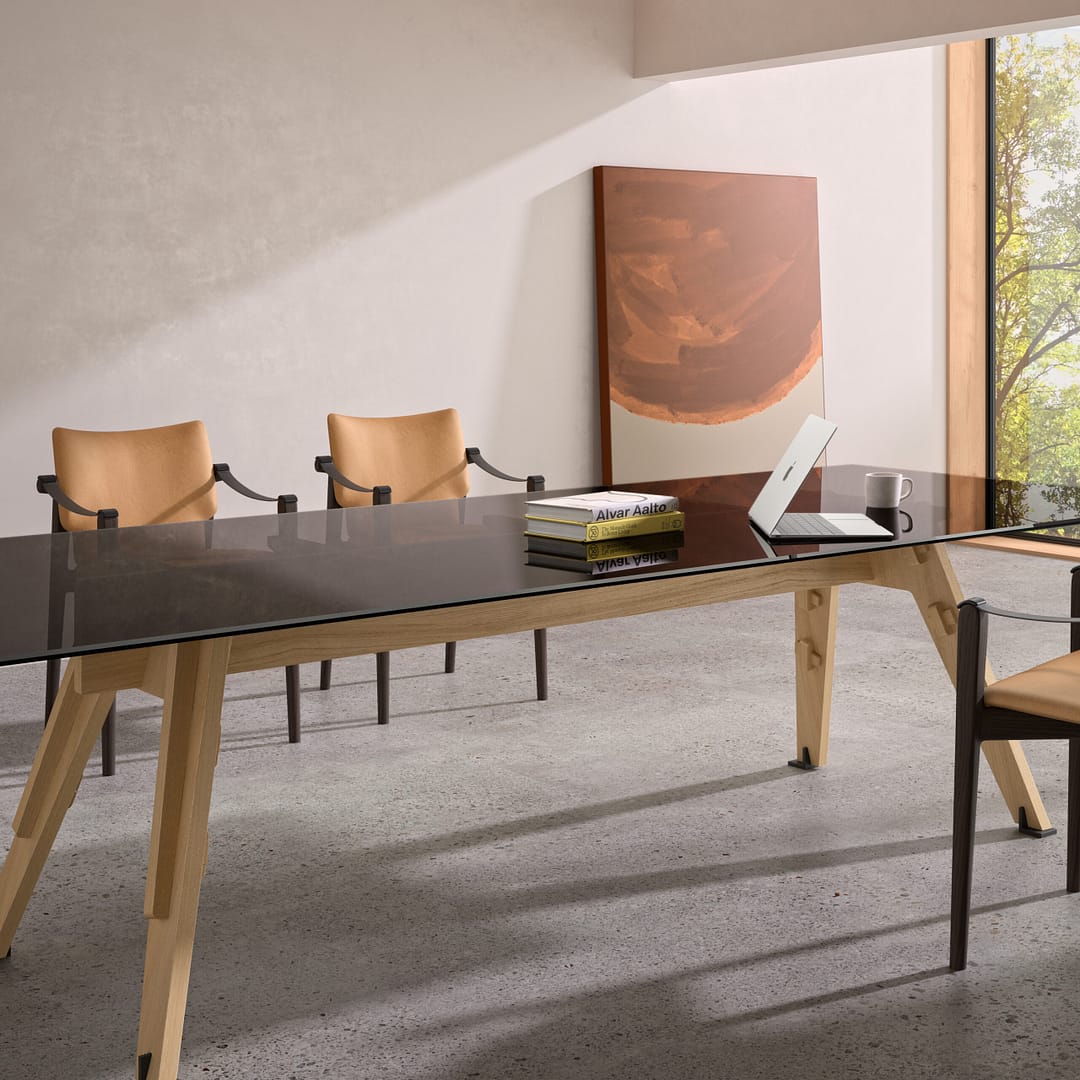 Tamara Table is an exemplary table, the result of a careful manufacturing process where the details have been worked to achieve a design remarkable for its personality and attractiveness, which allows a hybrid use in the new public and private spaces. A revolutionary table concept, based on the constructive interlocking of flat pieces of ecological plywood to form a three-dimensional structural assembly of great strength and solidity.