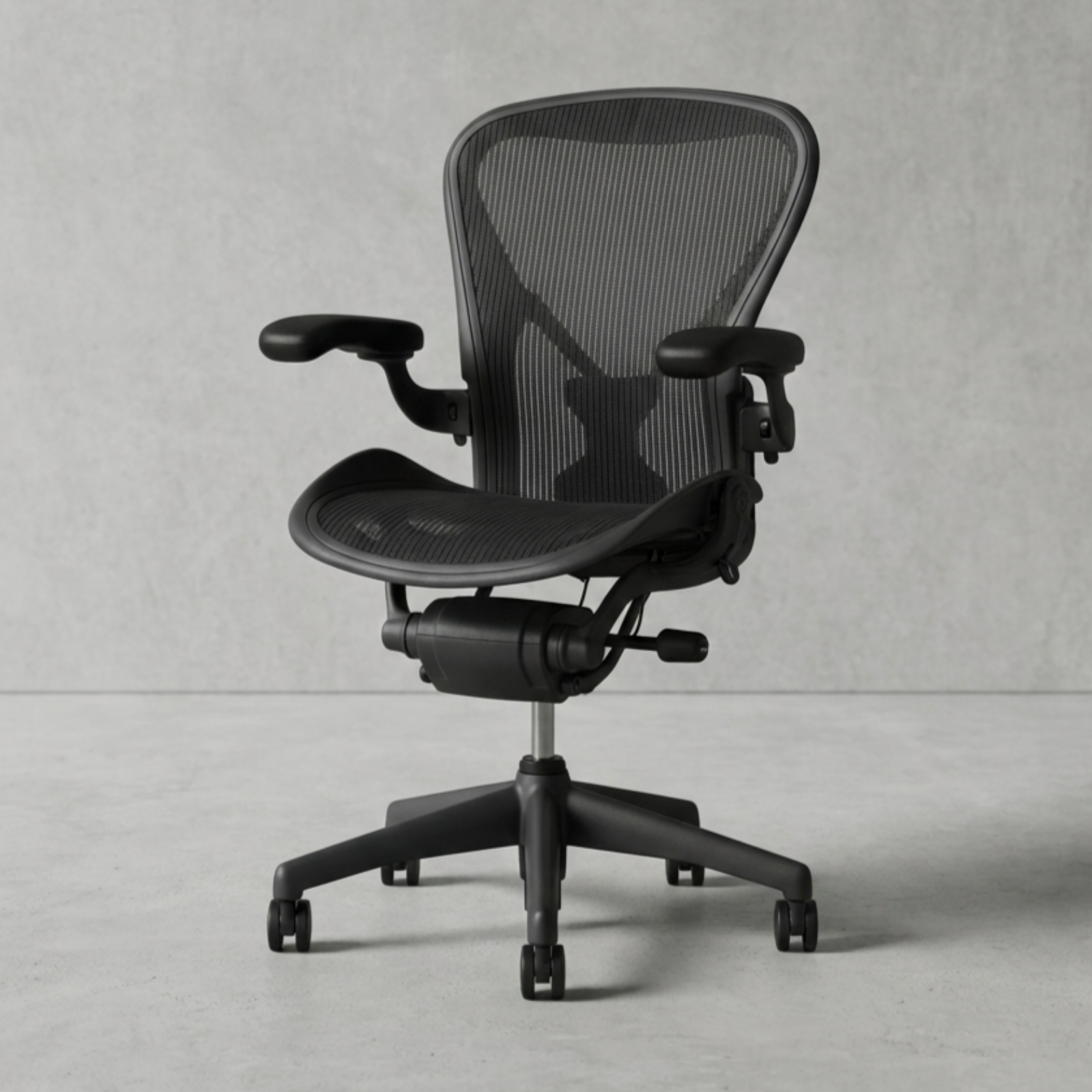 Herman Miller Aeron Carbon / Graphite – a symbol of comfort, style, and ergonomic excellence. This office chair combines iconic design with advanced functionality to deliver an optimal seating experience. The carbon-finish adds not only aesthetic value but also enhances durability and support. Thanks to its adjustable features—including seat height, tilt mechanism, and armrest settings—the chair adapts seamlessly to individual user needs. Designed with sustainability and environmental responsibility in mind, the Aeron fits effortlessly into any workspace or living environment, blending comfort and style in perfect harmony.