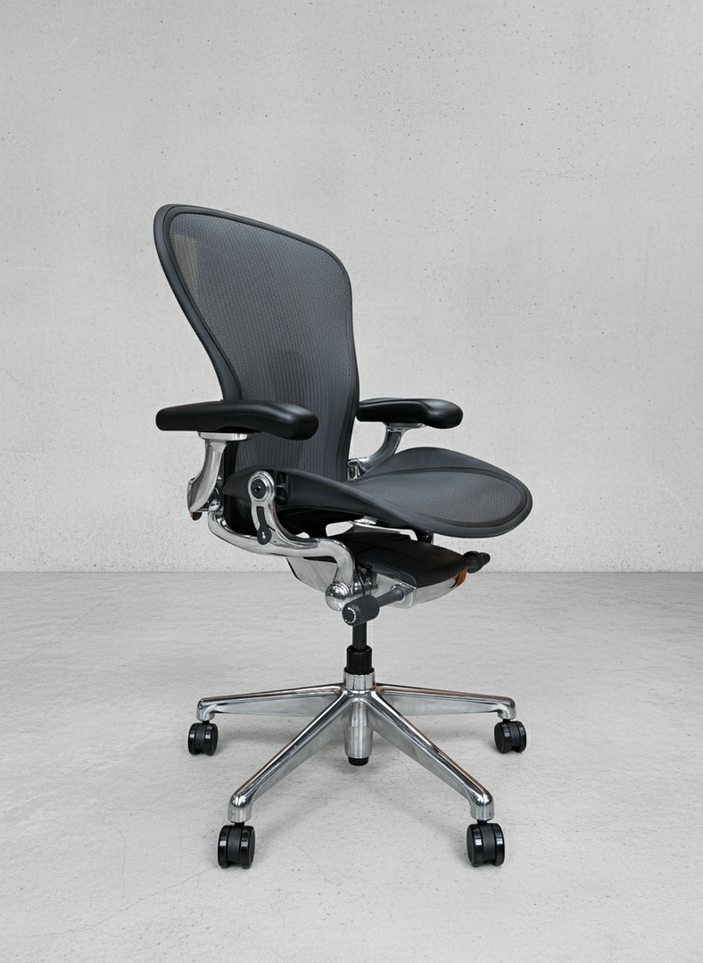 The Aeron Remastered remains unparalleled in its category. Engineered to provide outstanding ergonomic support across a wide range of body types, it features a breathable suspension system in the seat and backrest that conforms to the user’s form, relieving pressure on the spine, neck, and hips. Its refined tilt mechanism and fully adjustable armrests allow for precise customization, ensuring a healthy, supportive posture throughout long workdays. With its sleek and contemporary aesthetic, the Aeron Remastered not only delivers unmatched functionality but also integrates seamlessly into any professional setting.