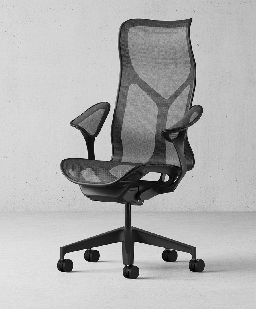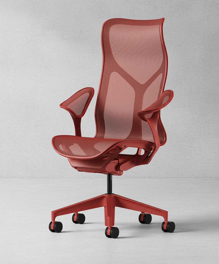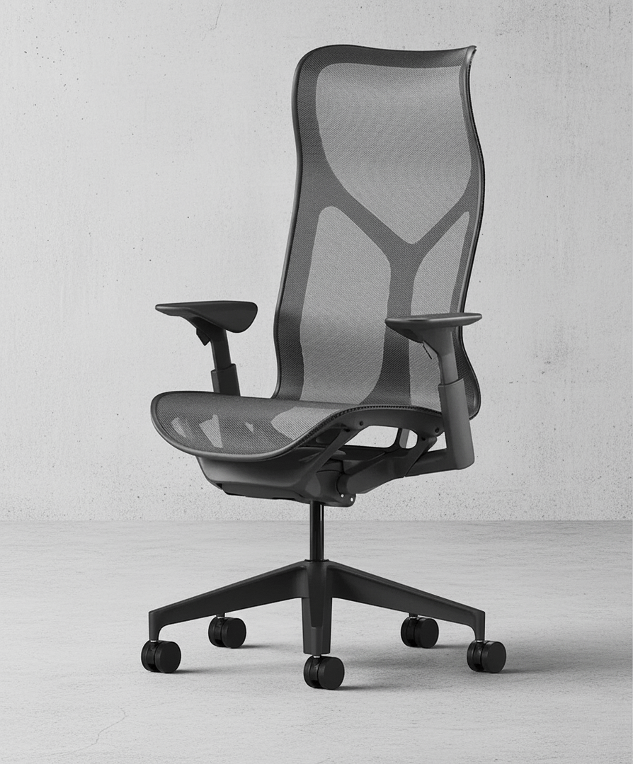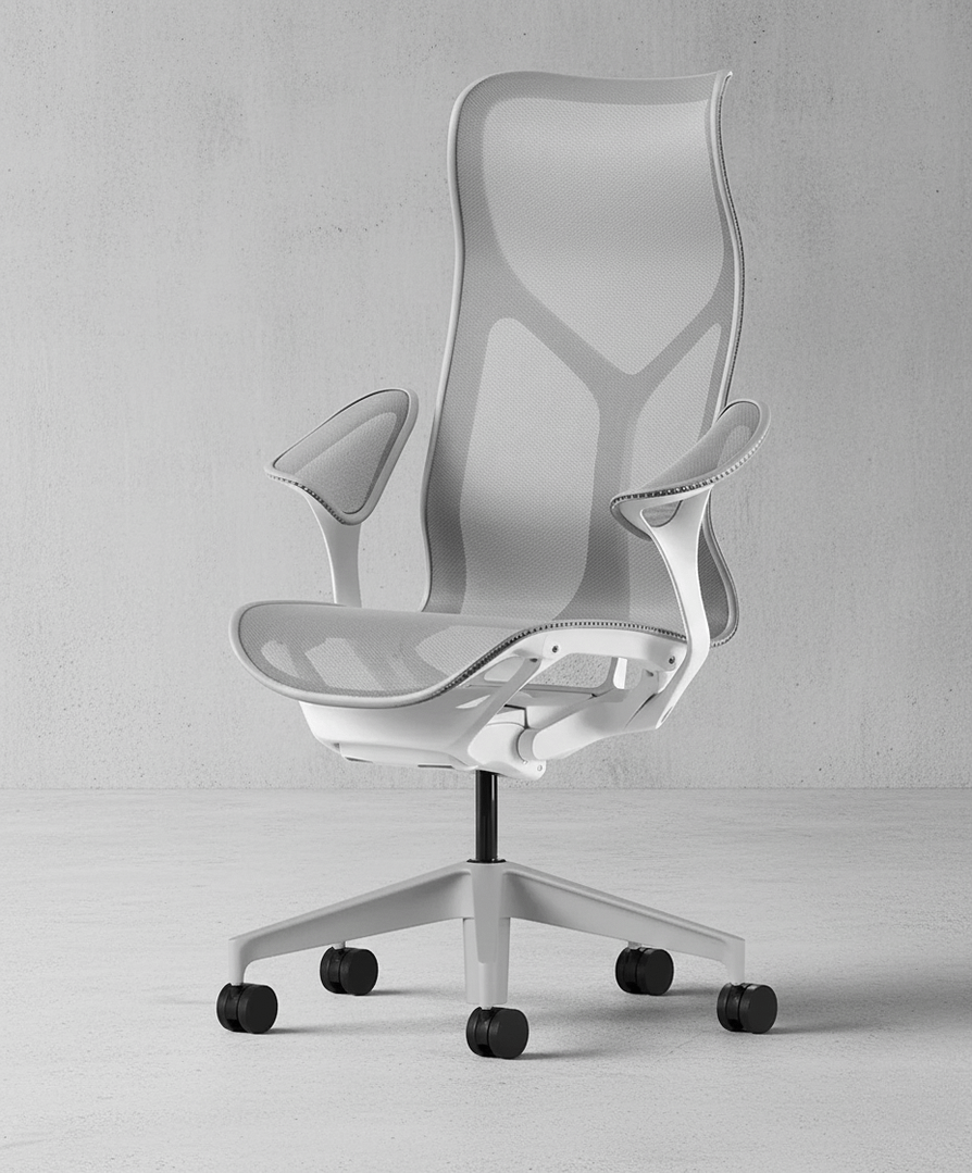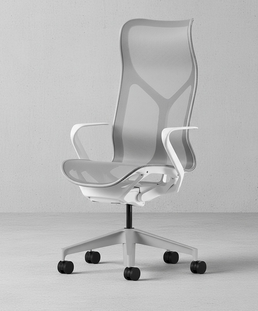 Cosm is available in three back heights – low, mid, and high – making it suitable for different work styles and levels of support. The chair also offers a variety of arm options, including the distinctive “Leaf Arms,” designed to stay unobtrusive when working close to a desk. Beyond its technical qualities, the Cosm stands out for its aesthetic: offered in unified color tones, where the frame and suspension blend seamlessly, it projects a minimalist yet refined presence. The result is a chair often described as one in which you can forget you are even sitting, thanks to its effortless balance of design, comfort, and ergonomics.
