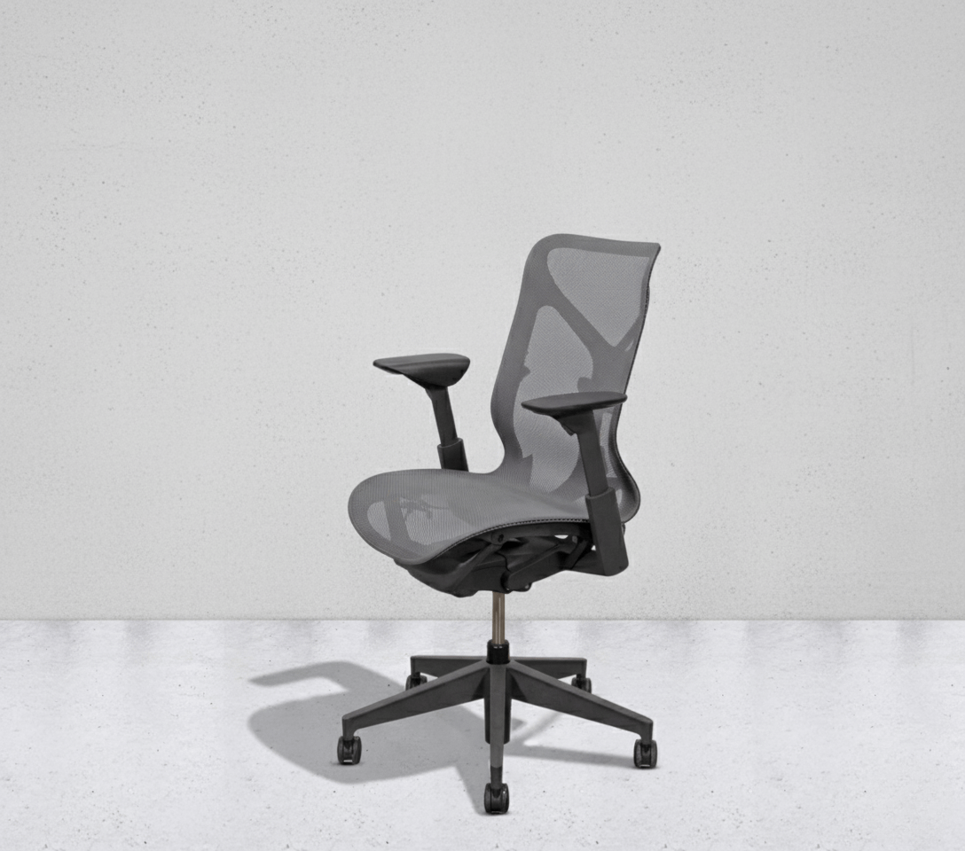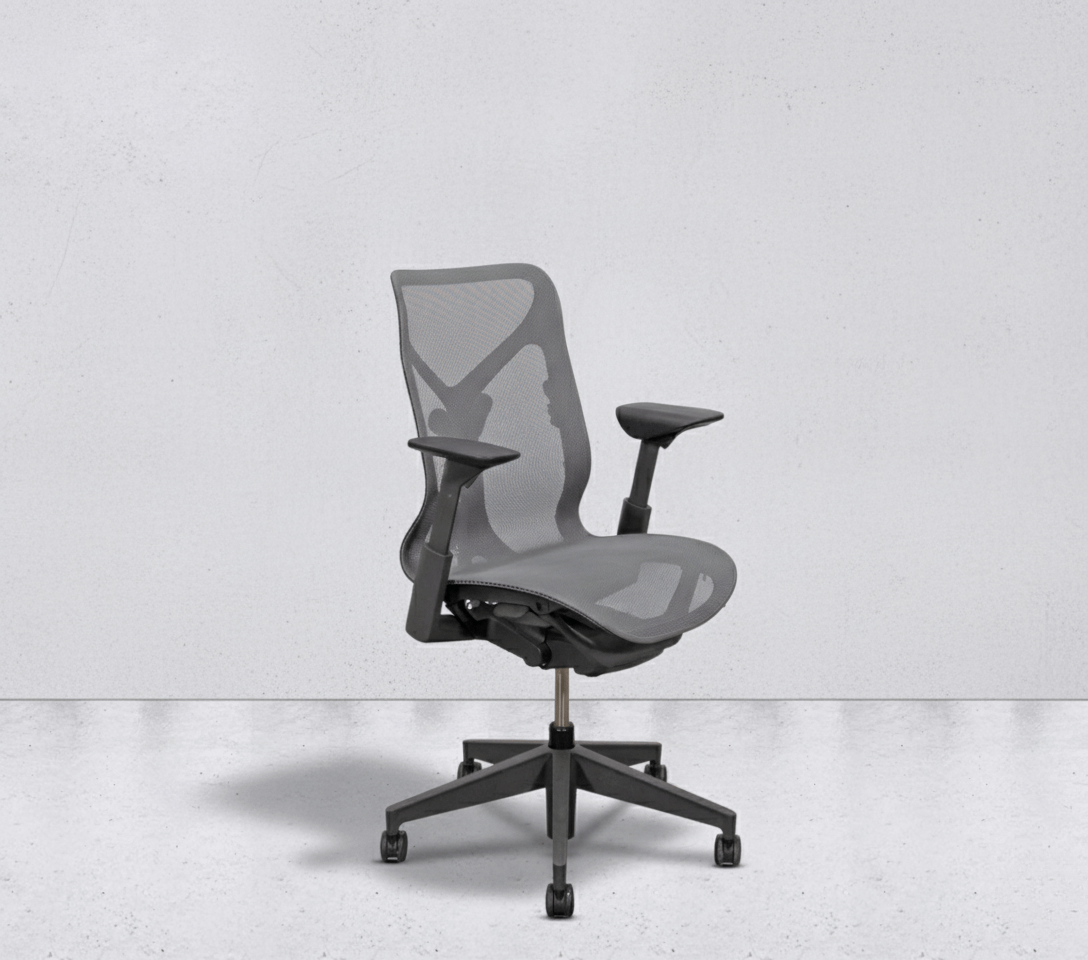 The Herman Miller Cosm with mid backseat is a chair designed to deliver immediate comfort without the need for adjustments. Its purpose is to make sitting as effortless as possible – you simply sit down, and the chair automatically adapts to your body. Unlike many other office chairs, the Cosm requires no complex fine-tuning, as it intuitively responds to movement and changes in posture. The seat and back are made from a continuous elastomeric mesh that distributes weight evenly, allows air to flow, and provides consistent support throughout the day. Its slim, flexible frame moves with you, eliminating hard edges and encouraging natural freedom of motion.