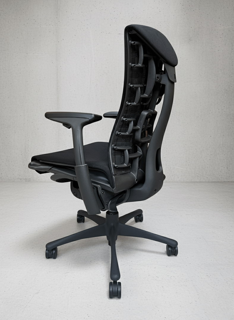 The Embody sets itself apart from conventional office chairs through its exceptional comfort, enduring back support, and innovative design philosophy. Its unique Tri-Flex back system adapts dynamically to every movement, providing targeted support across three distinct zones. The spine—including the critical lumbar region—remains properly aligned, while circulation to the legs and hips is maintained even during extended periods of sitting.