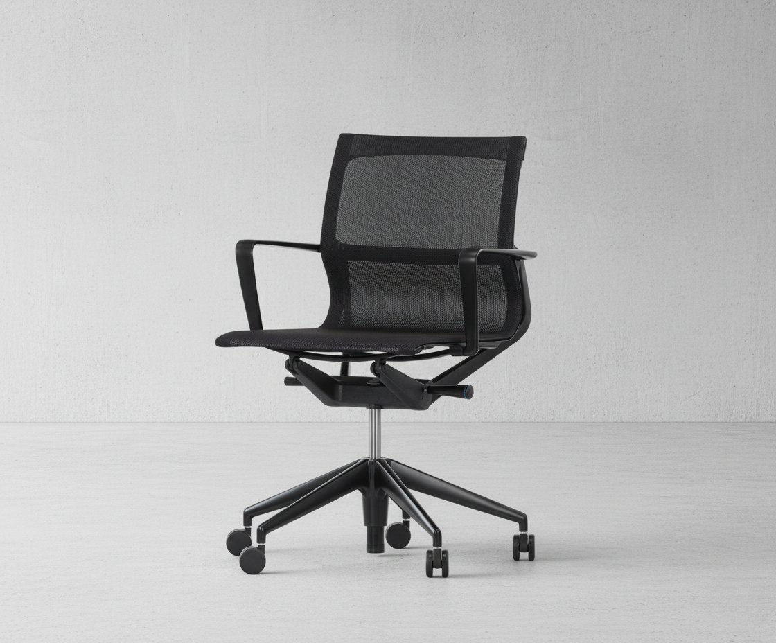 The Vitra Physix in black is a contemporary office chair that seamlessly blends innovation, comfort, and minimalist design. Created by renowned designer Alberto Meda, the chair stands out for its sleek silhouette, flexible structure, and sophisticated aesthetic. Crafted from premium materials and engineered with advanced technology, the Physix delivers exceptional ergonomic support for extended periods of sitting—without compromising on visual elegance. Whether placed in a home office, corporate workspace, or meeting room, the Vitra Physix effortlessly enhances both comfort and interior refinement.